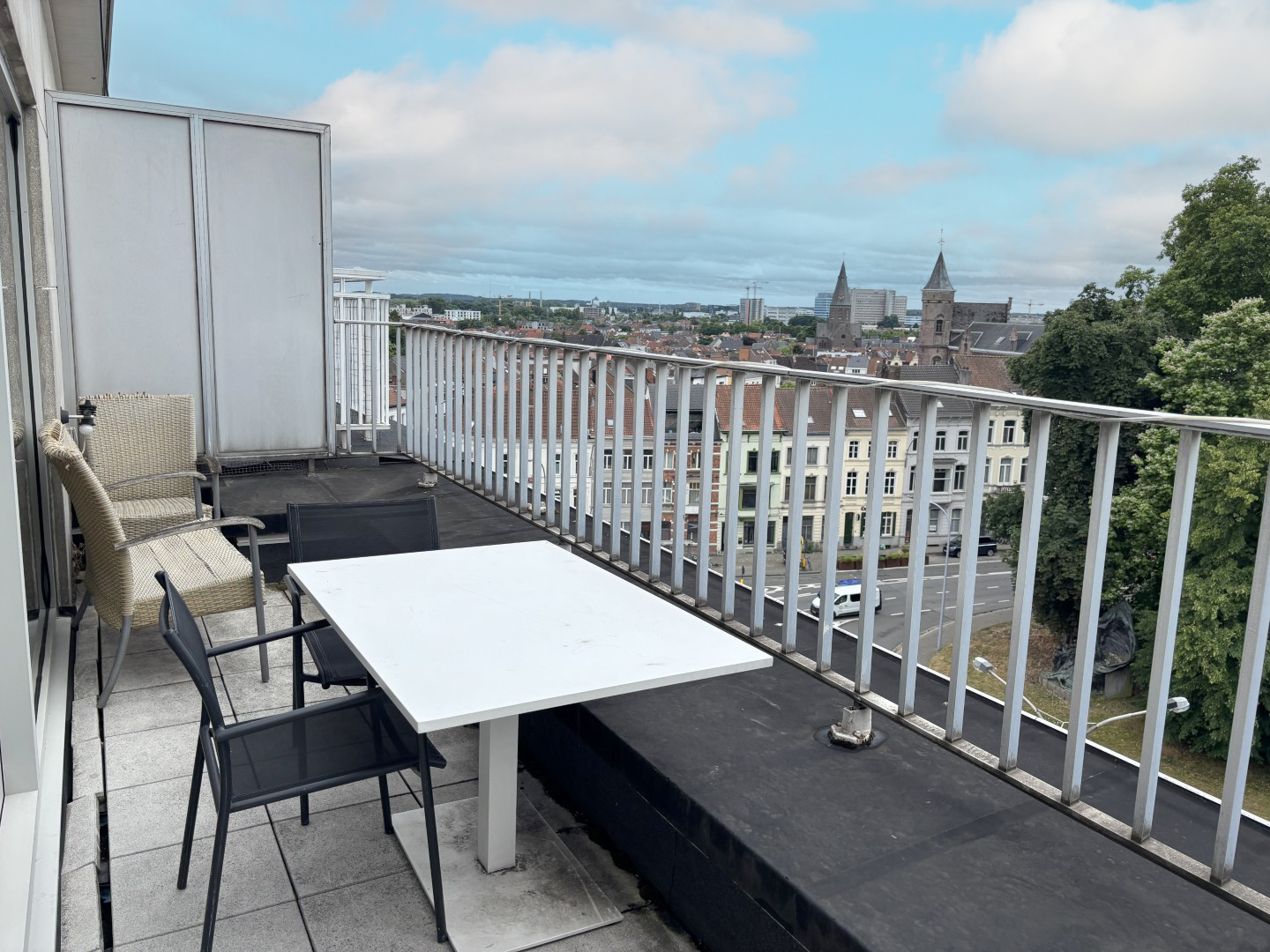 Karaktervol appartement op de 7e verdieping, gelegen tegenover het Citadelpark, vlotte verbinding met het openbare vervoer, grootwarenhuizen in de buurt, ... Het appartement bestaat uit volgende indeling: inkomhal, ruime woonkamer aan de voorzijde met veel lichtinval en parketvloer, geïnstalleerde keuken met toestellen (kookplaat, dampkap, oven, vaatwasser en frigo/diepvriezer), balkon met fantastisch zicht over de skyline van Gent, aparte berging met aansluiting wasmachine. Verder zijn er twee slaapkamers aan de achterzijde. Badkamer met ligbad/douche, lavabo en toilet. Bij het appartement hoort ook nog een praktische privé kelder. Opgelet, er is een lift tot de 6e verdieping, de laatste verdieping is met de trap. Huurprijs 1.195 euro/maand + 85 euro/maand gemeenschappelijke kosten incl. voorschot water + 85 euro/maand autostaanplaats. Vrij vanaf 01/10. Aarzel niet ons te contacteren voor meer informatie of voor een bezichtiging.