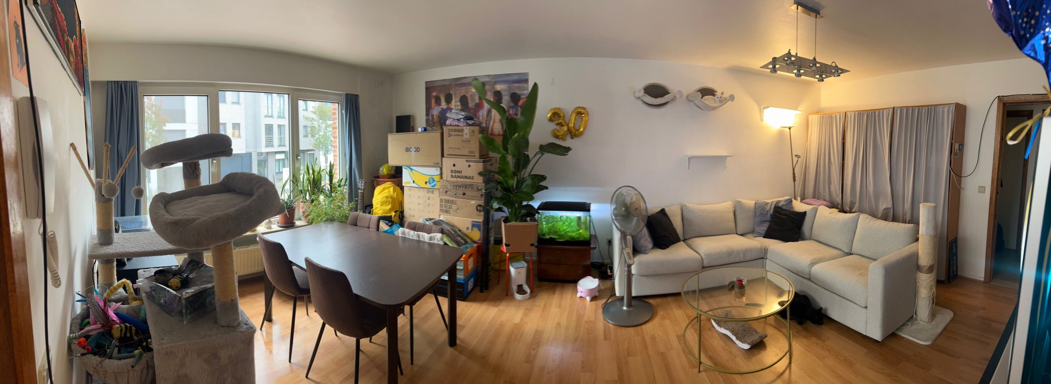 In dit kleinschalig gebouw, op wandelafstand van de winkels, openbaar vervoer, scholen, station Gent-Dampoort, Gent centrum,... vinden we dit gezellig appartement op de eerste verdieping (let op geen lift aanwezig!). De indeling is de volgende: inkomhal met gastentoilet, twee slaapkamers aan de achterzijde (waarvan één met balkon), badkamer met ligbad/douche en lavabo, aan de voorzijde van het appartement bevindt zich een ruime leefruimte, met aansluitend de geïnstalleerde keuken met berging met aansluiting wasmachine. Er hoort bij het gebouw nog een gemeenschappelijke tuin. Er zijn ook enkele parkeerplaatsen beschikbaar (wie eerst "thuiskomt") en fietsenberging. Huurprijs 875 euro/m + 50 euro/m kosten. Vrij vanaf 16/12.